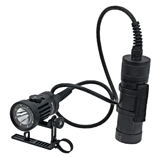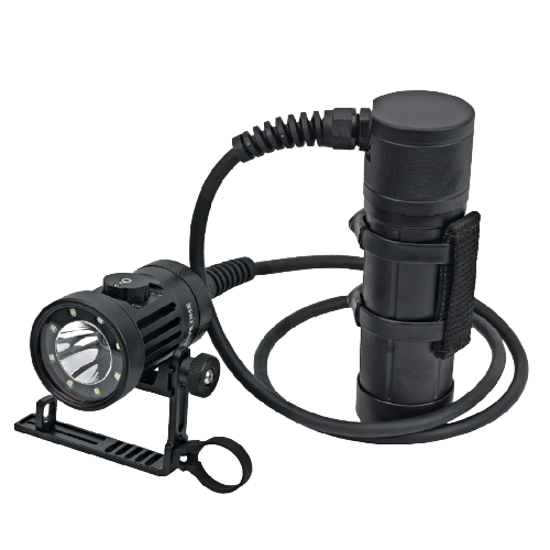원 핸드핼드는 명확한 수중신호를 위한 8°스팟라이트와 수중사진 및 비디오를위한 110° 와이드모드를 제공합니다 모든 탐사 다이빙의 극한요구사항을 견디도록 제작되었으며 통합된 제어부는 배터리 전압 및 온도를 지속적으로 모니터링하여 배터리가 부족할때 깜빡이는 경고 후 백업라이트로 교체할 수 있도록 에스코트기능을 탑재하였습니다