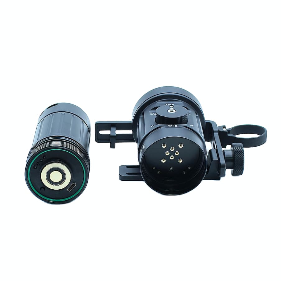 원 핸드핼드 라이트는 명확한 수중신호를 위한 8°스팟라이트와 수중사진 및 비디오를위한 110° 와이드모드를 제공합니다